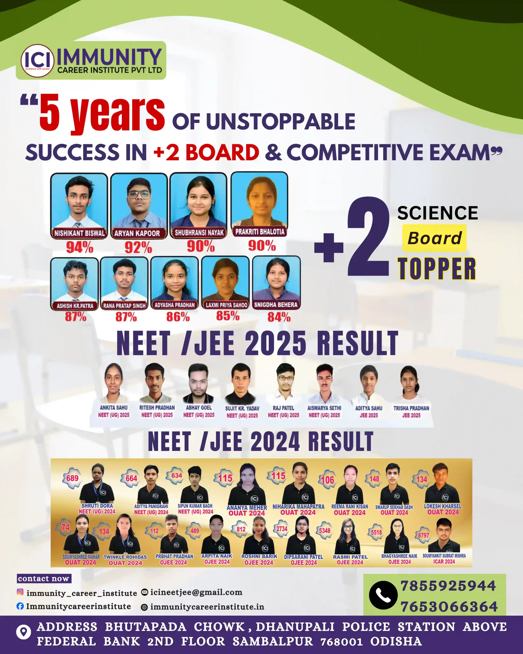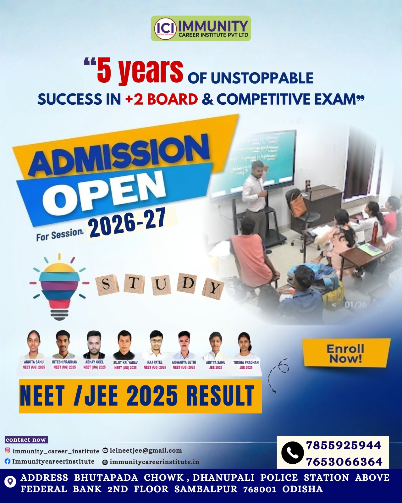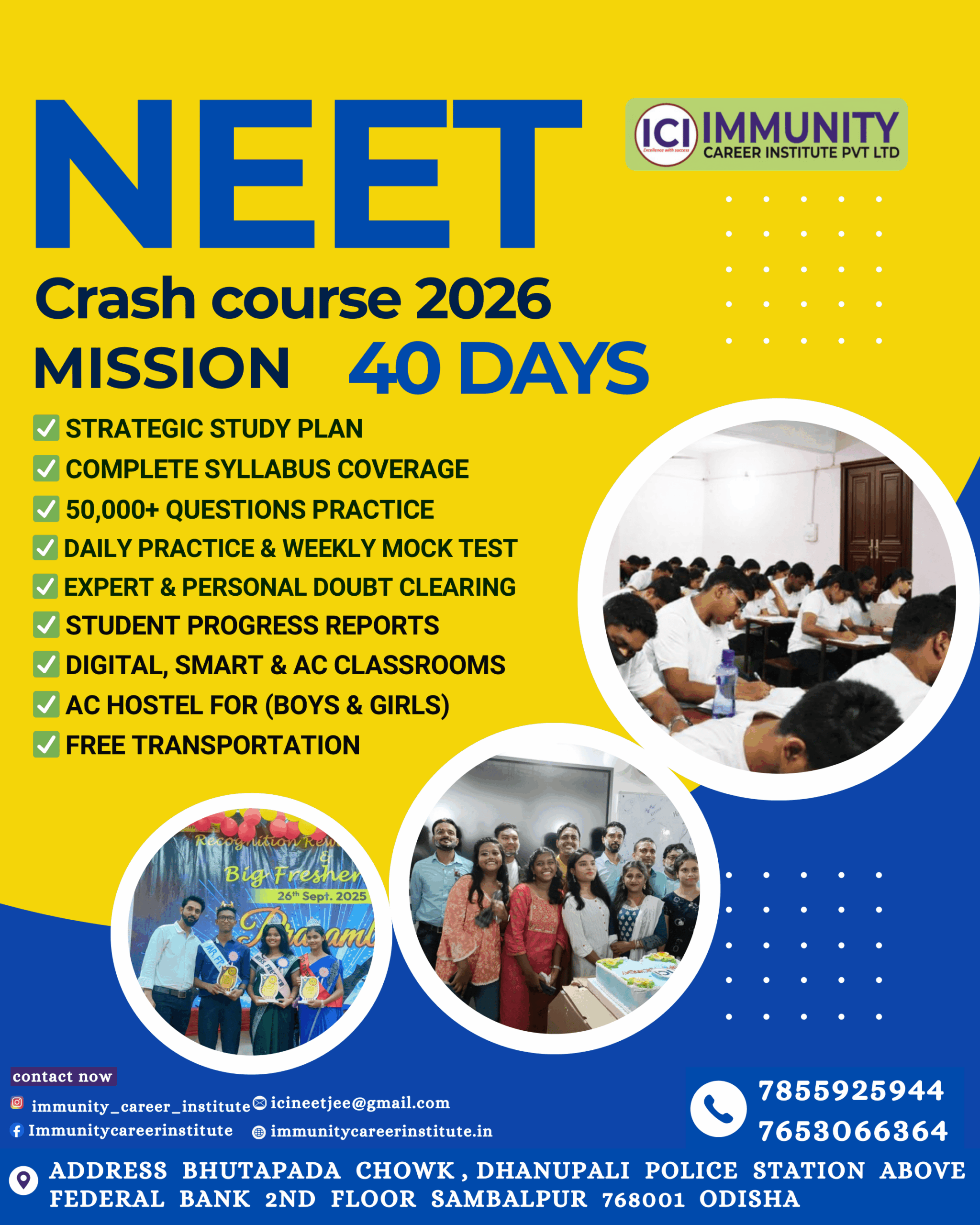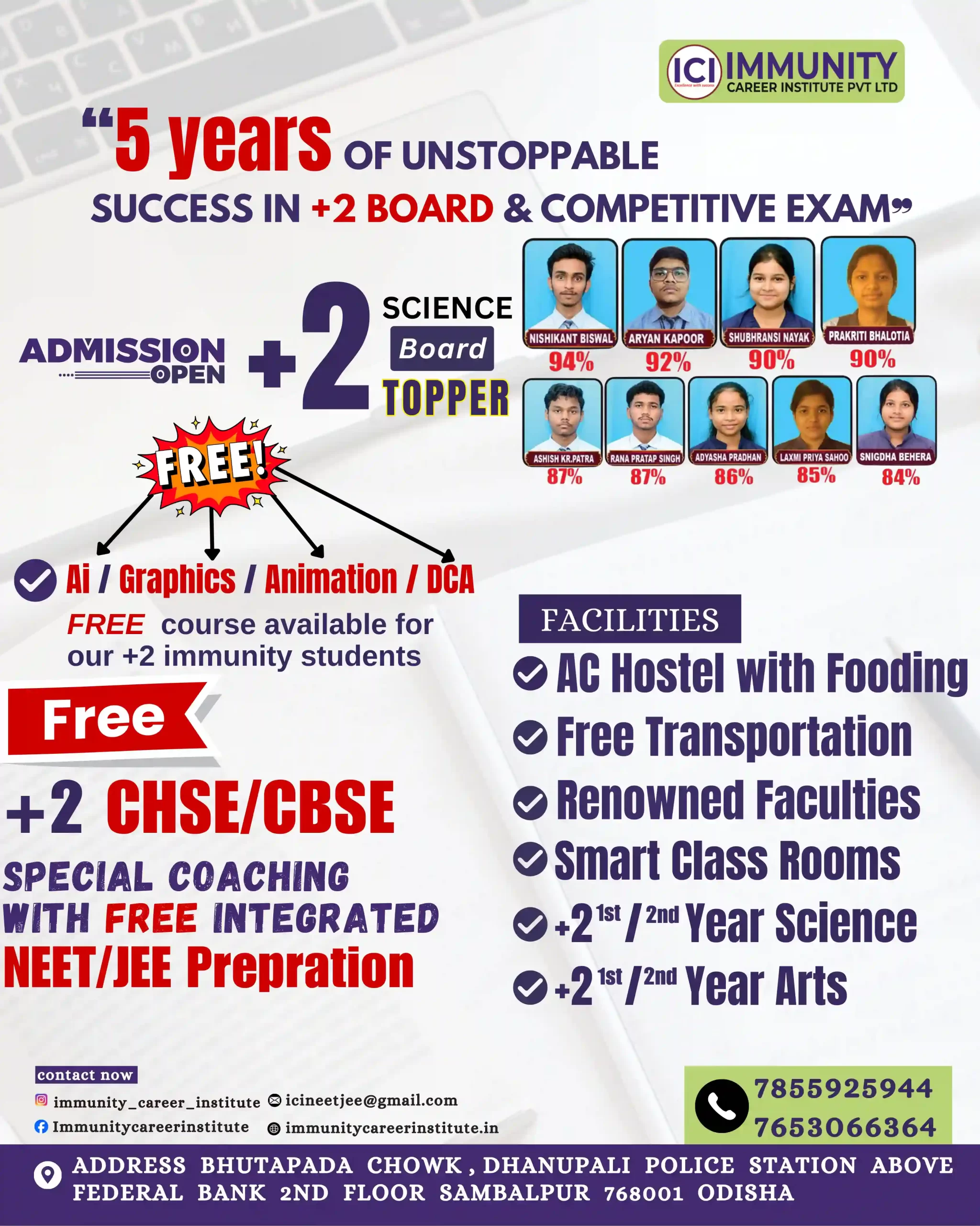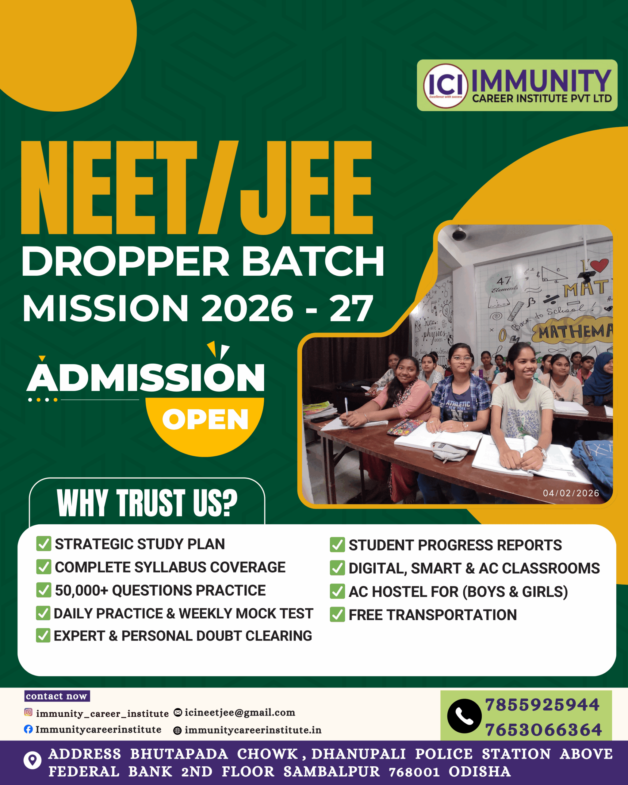 - Dropper batch for 12th appearing students (course included preparation for NEET, OUAT, IISER, NISER etc)