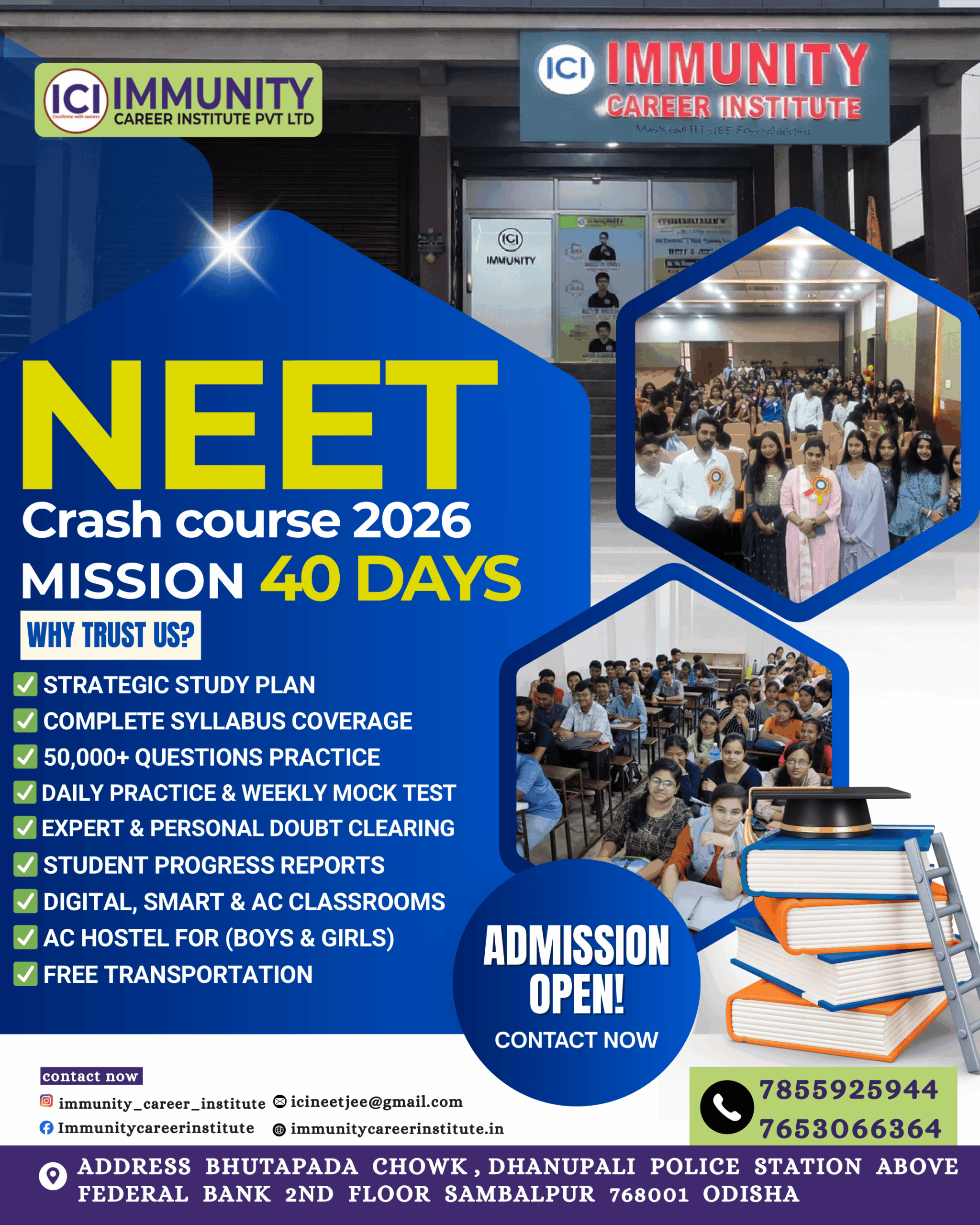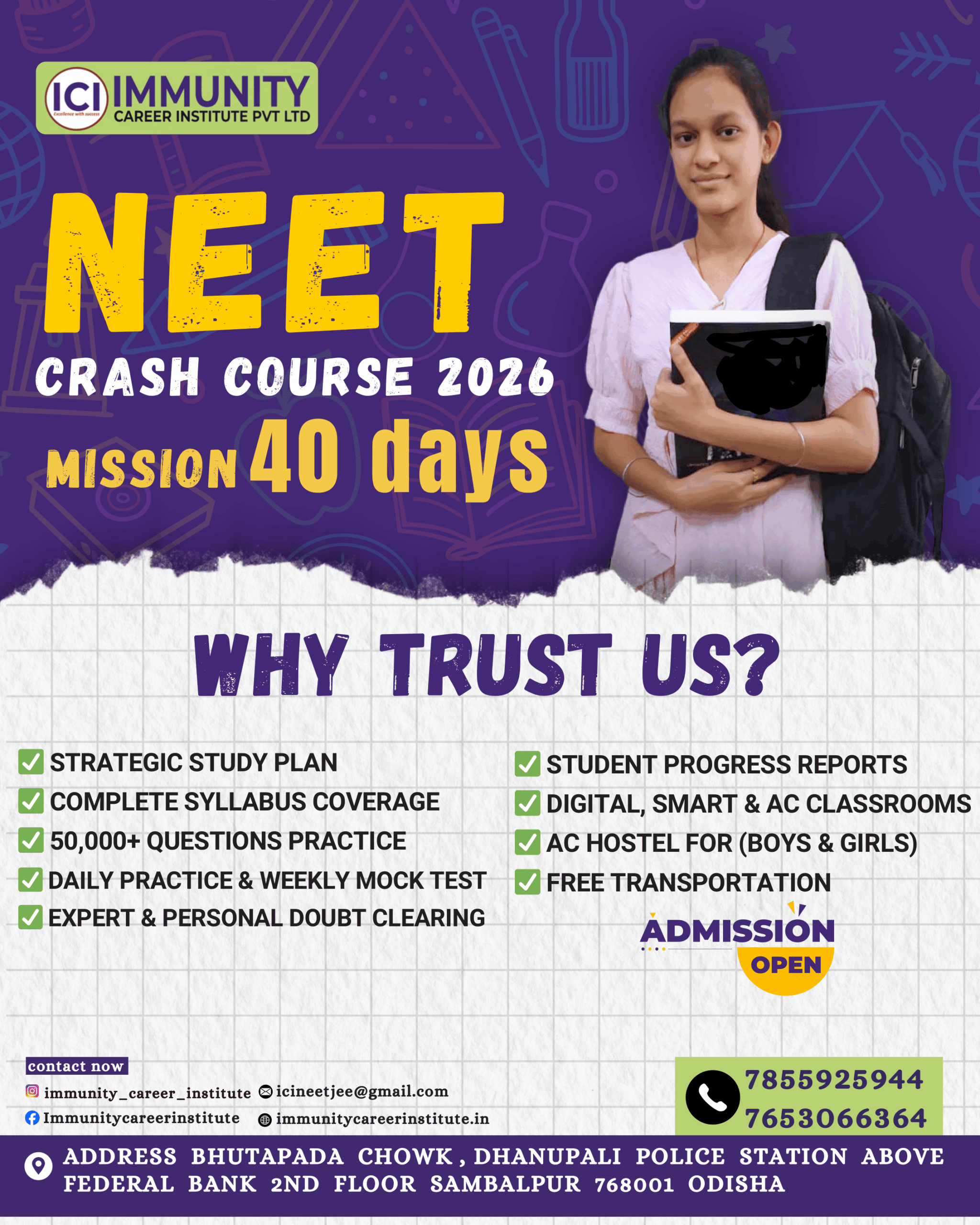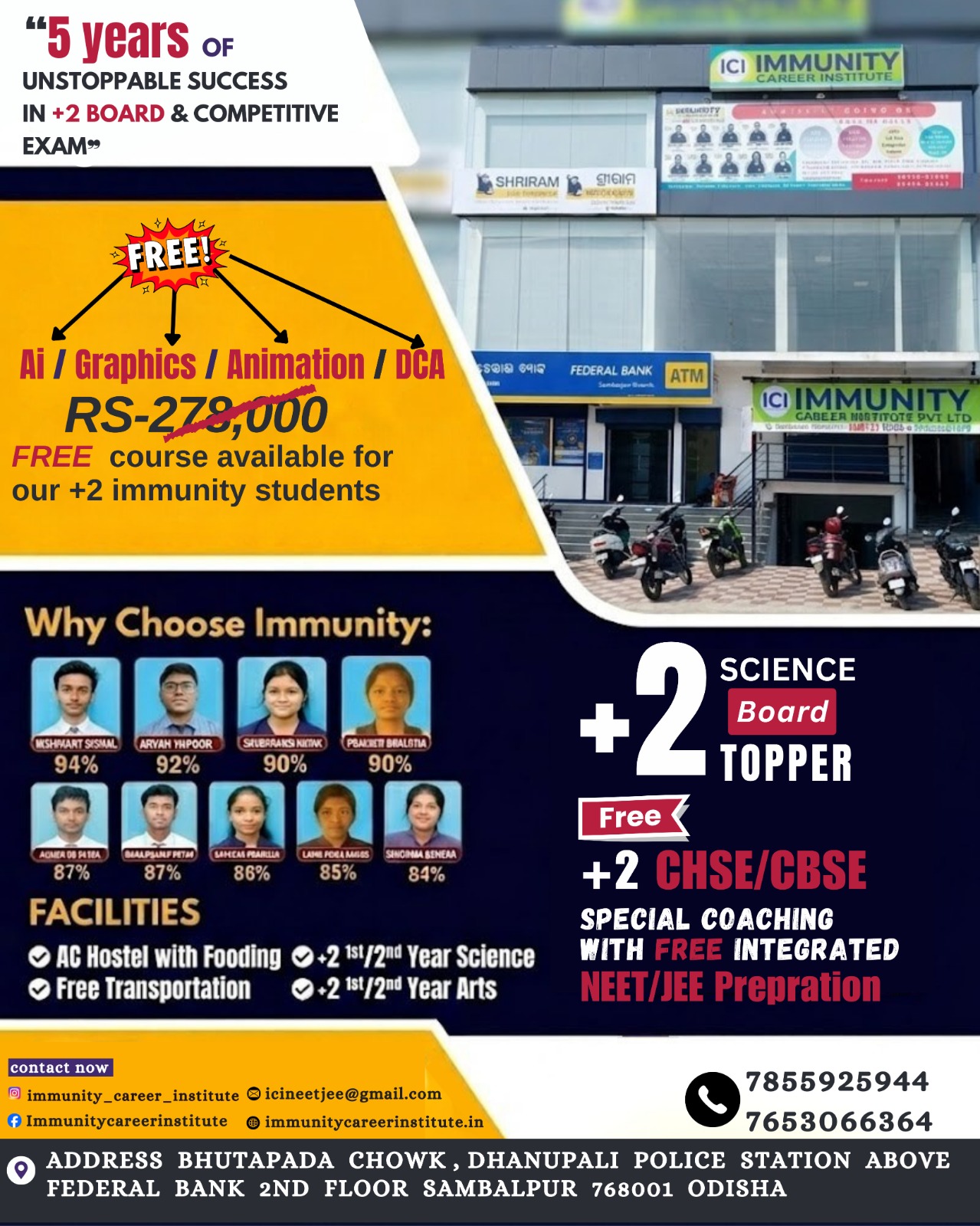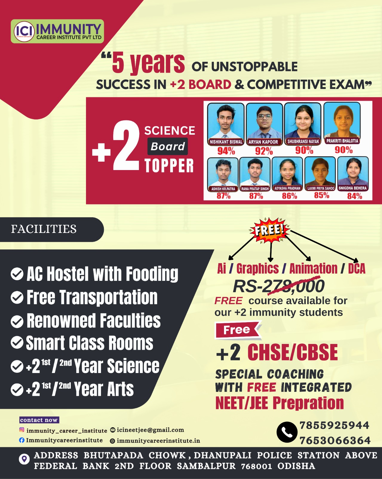 - Dropper batch for 12th appearing students (course included preparation for NEET, OUAT, IISER, NISER etc)